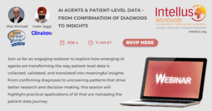 In  AI Agents & Patient-Level Data from Confirmation of Diagnosis to Insights, a live webinar happening on Wednesday, February 4th, 11am ET, Rare Patient Voice President Wes Michael and Clinakos, Inc. CEO Inder Jaggi will share perspectives from technology innovation and patient-centric research, discussing how AI-powered approaches can improve data quality, accelerate insights, and ultimately enhance the impact of patient voices across healthcare and life sciences. For consulting analytics and life sciences teams, this creates a powerful feedback loop—sharper segmentation, deeper insights, stronger HEOR and real-world evidence, and faster, more confident decisions across clinical development, medical affairs, and commercial strategy.